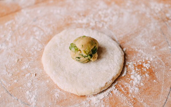 Brought to you from the streets of Shanghai to your kitchen is the Shangai Da Bing or Sesame Pancake. This pancake has a savory filling and is topped with sesame seeds to give it that extra boost of flavor.